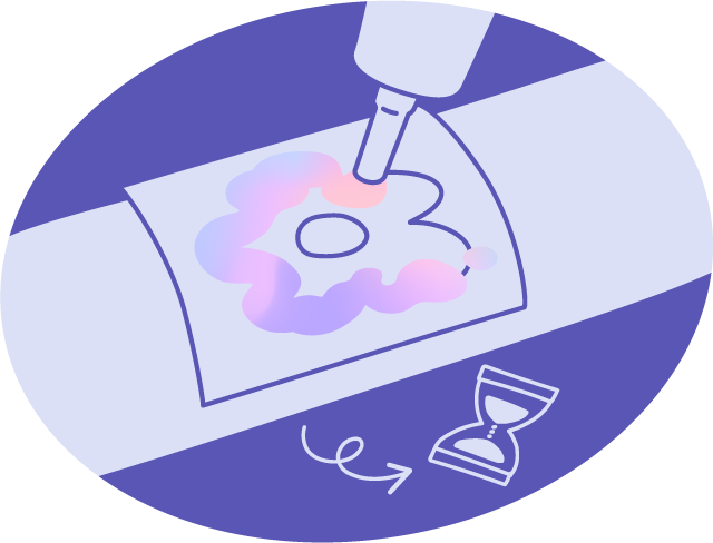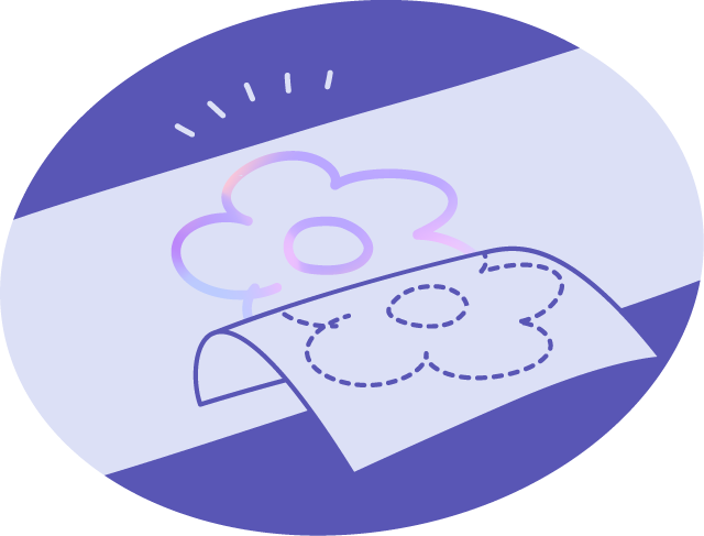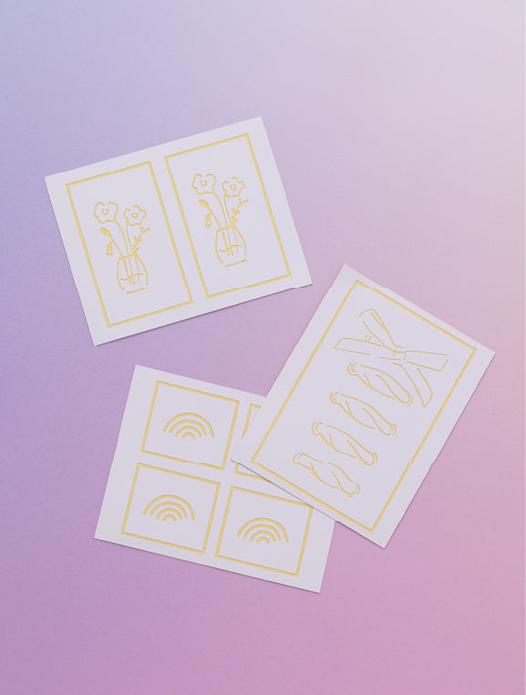 次にデザインを埋めるように、インクを塗ります。インクはすぐに着色するので、塗り間違えやはみ出しなどにご注意ください。塗り終えたら、時間をおいて定着させます。 -